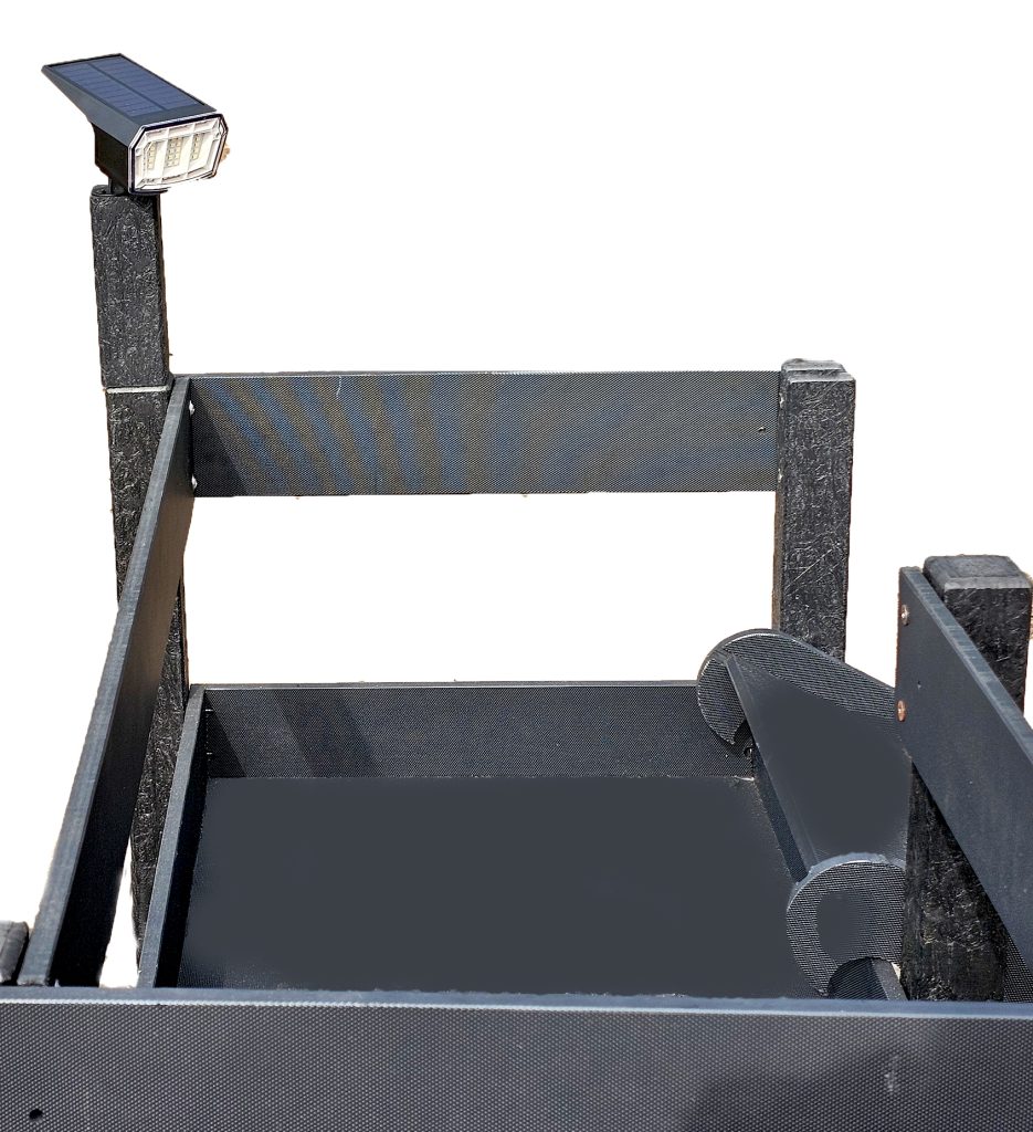 This solar powered light comes with its own extention arm with ready made connectors at the top of each leg post